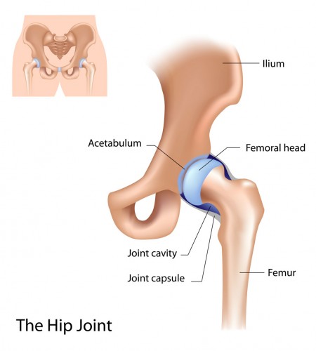 Your hip is the joint where your thigh bone and pelvis meet. Hips are called ball-and-socket joints because the ball-like top of your thigh bone moves within a cup-like space in your pelvis. Your hips are usually very stable, and it takes a great deal of force to hurt them. Playing sports, running, overuse or falling can lead to hip injuries.